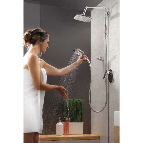 Regadera con Monomando PRO SD Thames con tecnología de ahorro de agua minimiza el derroche ofreciendo un mayor rendimiento sin sacrificar el confort en la ducha, ofrece mayor cobertura para una mayor relajación.