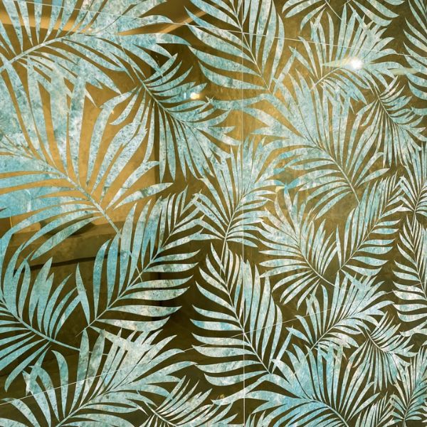 MANILA by DUNE es un azulejo decorado, de 60×120 cm, que combina un fondo de PVD dorado con un diseño de plena tendencia: un bosque de hojas de palma en el color verde Amazonite. La serie Amazonite representa el exotismo en estado puro e irradia frescura, gracias a su color verde azulado inspirado en la amazonita, suma tendencia y elegancia a tu proyecto. Si bien en salones y cocinas toma absoluto protagonismo, estos azulejos efecto mármol son capaces de transformar los baños y elevar la estancia a otra dimensión.