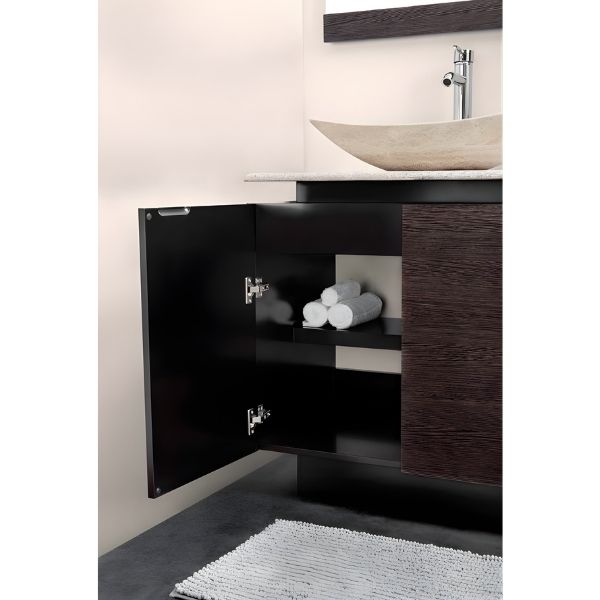 Dos puertas del mueble con gran espacio para su comodidad de guardar y tomar sus artículos de higiene personal fácilmente.
