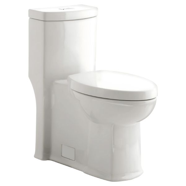 Inodoro de cerámica porcelanizada con superficie antimicrobial permanente EverClean. Es un sanitario de una pieza LXP de Alto desempeño. Con botón superior cromado. De diseño audaz, sofisticado. Un toque de Bauhaus en su cuarto de baño.